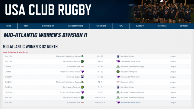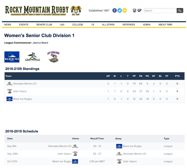 Rocky Mountain Rugby provides a nice illustration of how the CMS standings and schedules can be embedded into a website.